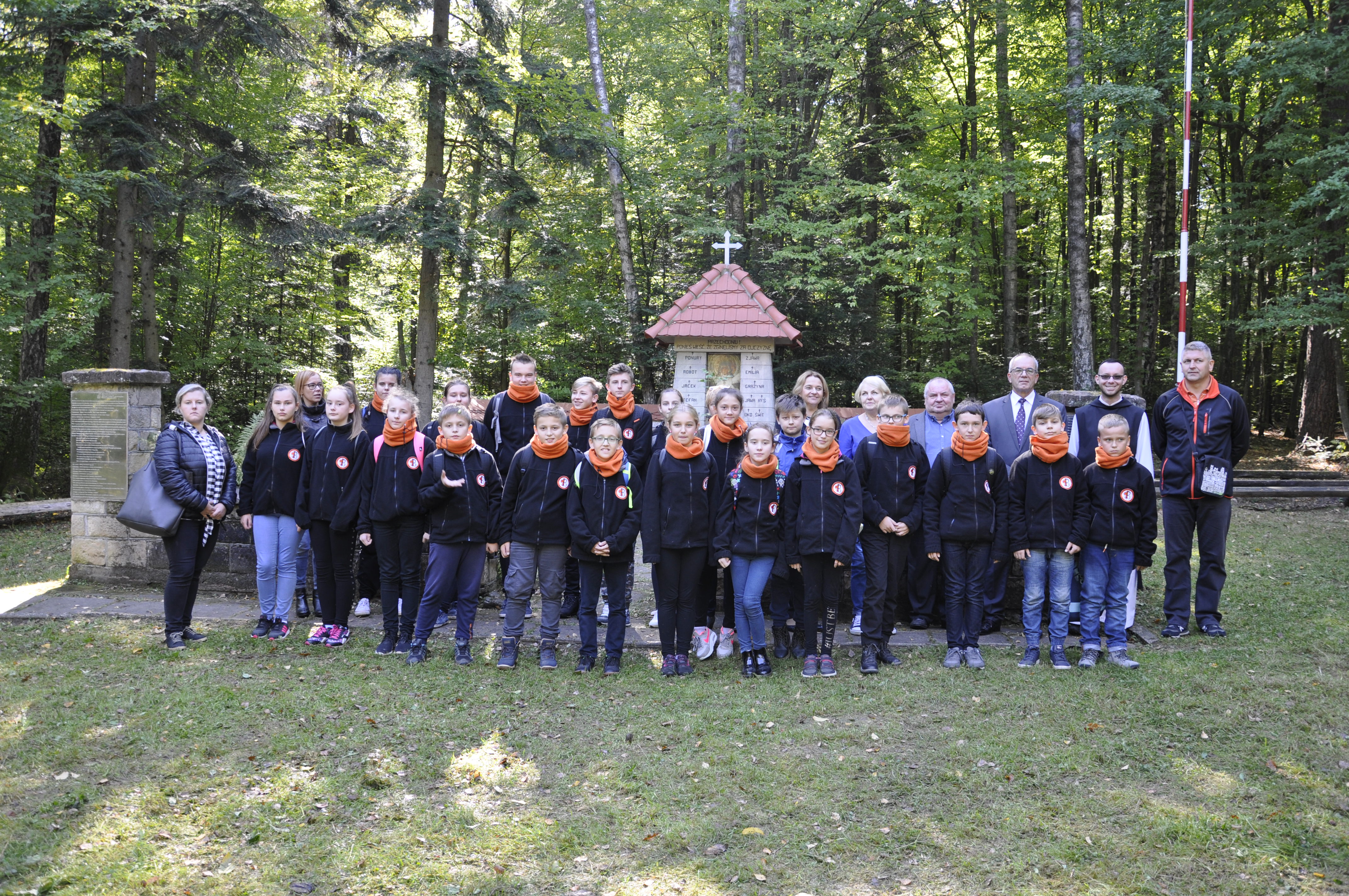 W dniu 13 września 2018 roku w ramach działań realizowanych w związku z obchodami 100-lecia Niepodległości uczniowie z klas I-III naszej szkoły, ich wychowawcy, a także rodzice wzięli udział w pieszej wycieczce do Wąchocka. Dopisała im piękna pogoda. Podczas wyprawy poznali okolice i walory historyczne własnego regionu, zabytki oraz miejsca upamiętniające walkę o niepodległość, podziwiali przyrodę, bogate krajobrazy. W pobliżu budynku starej szkoły, która znajdowała się na początku naszej wsi, dzieci zatrzymały się przy stuletnim krzyżu, niemym świadku różnych wydarzeń wsi i jej mieszkańców. Z kolei w Wąchocku przy ulicy Kościelnej poznały pomnik z 1930 roku, poświęcony legionistom Józefa Piłsudskiego,