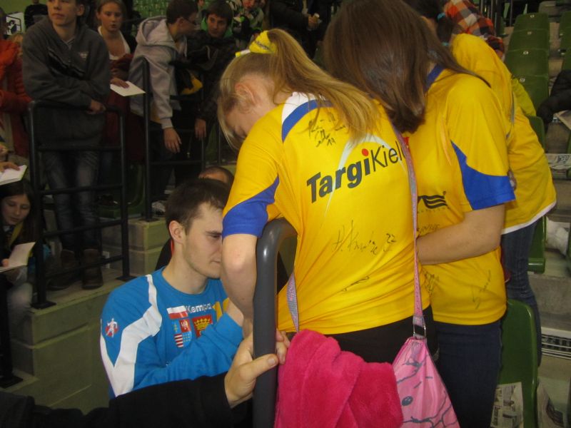 Piłka ręczna to nasza wielka pasja. Każdego dnia rozmawiamy o kolejnych zagrywkach, bądź ćwiczymy je i żyjemy od meczu do meczu- swojego, albo naszej drużyny Mistrza Polski- Vive Targi Kielce. Emocje jakich doświadczamy na Hali Legionów nie równają się z niczym innym, a dodatkowo te mecze to możliwość lepszego poznania przepisów gry, taktyki, oraz sprawdzian jak dajemy sobie radę w roli kibica. A dajemy sobie radę naprawdę dobrze ;-) Kiedy dziś tuż przed wyjazdem pani Ewa powiedziała nam, że po meczu zrobimy sobie zdjęcie z całą drużyną, emocje sięgnęły szczytu. Mamy mnóstwo zdjęć z zawodnikami, ale jeszcze nigdy nie udało