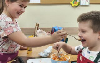 Dziś sala klasy zamieniła się w kuchnię pełną małych kucharzy-artystów Dzieci brały udział w zajęciach promujących zdrowe odżywianie, realizowanych w ramach założeń "Programu dla szkół" - projektu unijnego koordynowanego przez Krajowy Ośrodek Wsparcia Rolnictwa Oddział Terenowy w Kielcach Podczas wspólnej pracy, dzieci przygotowały kolorowe i pełne witamin sałatki z owoców i warzyw Uczyły się krojenia, mieszania oraz komponowania wartościowych posiłków, przy zachowaniu zasad bezpieczeństwa i higieny pracy w kuchni Zajęcia przebiegały w atmosferze radości i były przepełnione uśmiechami A przygotowane posiłki musiały być niezwykle smaczne, bo sałatki bardzo szybko zniknęły z miseczek