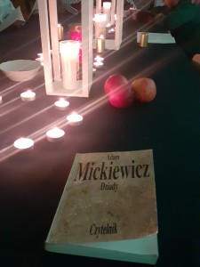 W związku z rokiem Mickiewiczowskim w klasie VII odbyło się czytanie części II „Dziadów” pod kierunkiem pani Beaty Sikorskiej. Uczniowie wcielili się w kwestie bohaterów dramatu i w scenerii Mickiewiczowskiego klimatu przenieśli się w czasy utworu. W tajemniczy nastrój uczestników wprowadziła specjalnie przygotowana na tę okoliczność klasa: symboliczna dekoracja, wyłączone światła, palące się świeczki, „poczęstunek dla duchów”, a także odpowiednie stroje i trochę przerażająca muzyka. Młodzież z przejęciem czytała kolejne wersy dzieła naszego wieszcza narodowego. Ważną rolę spełniał chór, którego kwestie deklamowała cała grupa uczniów, co dodatkowo potęgowało nastrój grozy i tajemniczości… Spotkanie było niezwykle udane. Wydaje się, że taka forma odczytania obowiązkowej lektury pozwoliła uczniom nie tylko lepiej zrozumieć treść dramatu, ale jednocześnie przeżyć coś nowego.