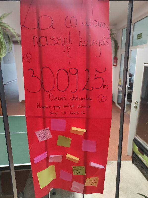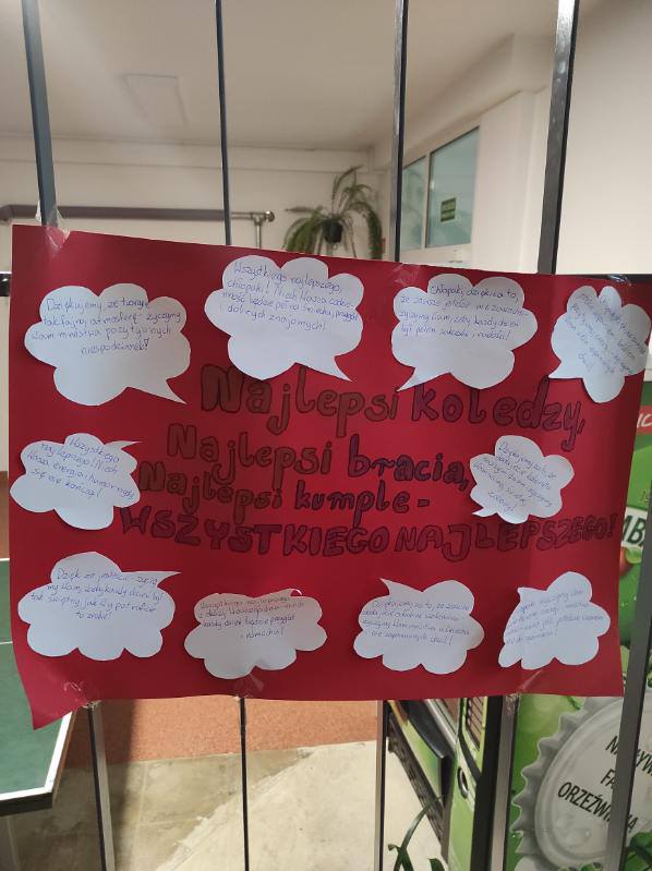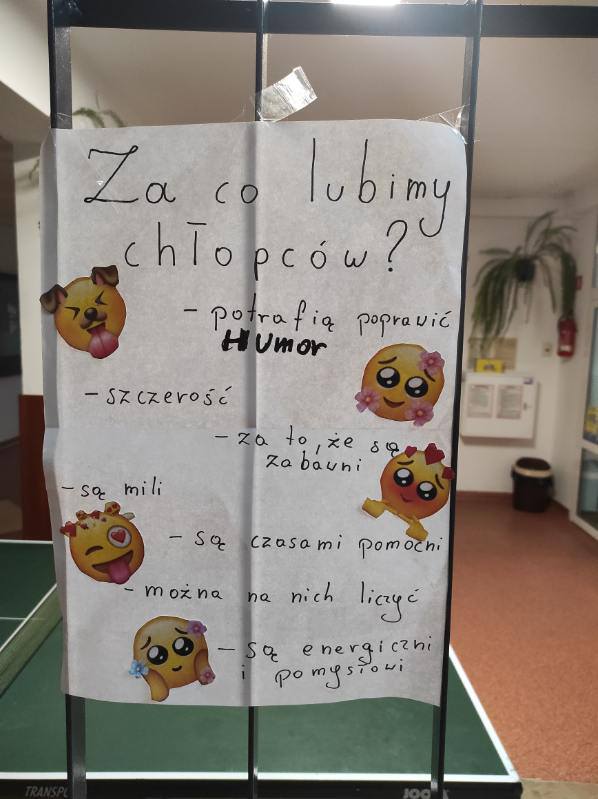 Dziewczynki z Samorządu Uczniowskiego przygotowały dla chłopców niespodziankę – plakaty z serdecznymi słowami