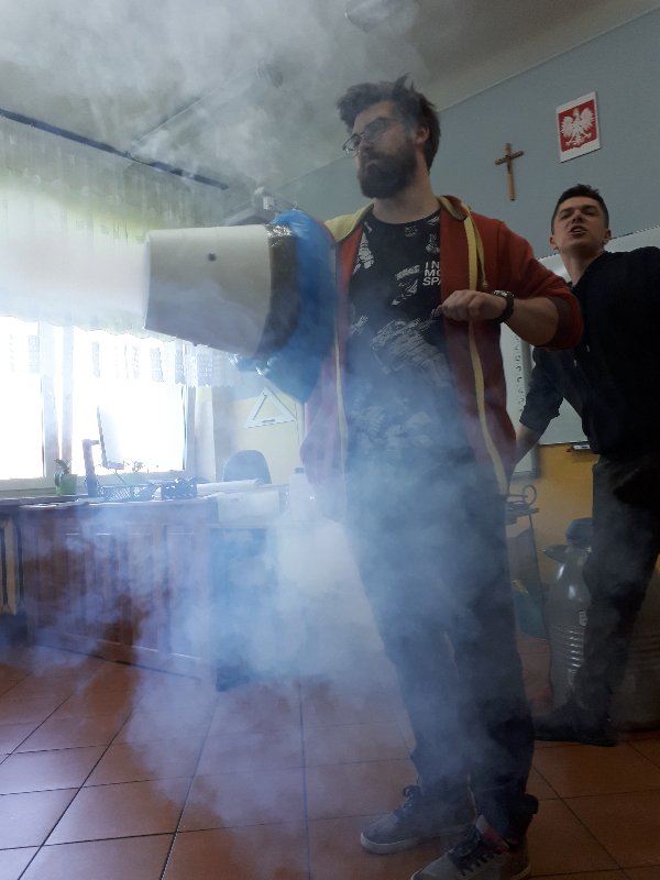 9 października uczniowie naszej szkoły mieli możliwość uczestniczenia w niecodziennych zajęciach. Grupa „Zaelektryzowani” zaprezentowała pokaz z pogranicza chemii i fizyki pt. „Fizyka wszędzie styka”. Pokaz zawierał w sobie elementy pouczającej pogadanki i eksperymentów laboratoryjnych. Uczniowie mogli na własne oczy zobaczyć jak tworzy się chmura i co dzieje się, gdy wybucha wodór. Zmieniali swoje głosy helem i bawili się ciekłym azotem. Poprzez zabawę uczniowie dowiedzieli się wielu interesujących rzeczy. Grupa „Zaelektryzowani” swoim występem pokazała, że tak trudne przedmioty jakim są chemia czy fizyka mogą być również ciekawe i zrozumiałe dla wszystkich.