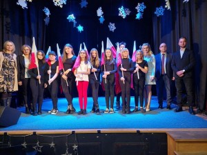 Dziś tj.14 grudnia nasi Laureaci Konkursu Patriotycznego „Jestem dumny. Jestem Polakiem” byli w Warszawie na uroczystej gali wręczenia nagród w towarzystwie pani dyrektor Bożeny Wrony i opiekuna grupy pani Beaty Sikorskiej. Uczniowie zajęli I miejsce w kategorii Inscenizacja klas 5-8. Taniec z flagami „Dla Niepodległej” wzbudził ogromne emocje i euforię wśród komisji i widzów. Tym bardziej jesteśmy dumni, ponieważ program został wybrany spośród 600 zgłoszeń z całego kraju. Organizatorem konkursu była Surge Polonia. Cel konkursu to budowanie i pielęgnowanie postaw patriotycznych wśród młodego pokolenia Polaków. Jesteśmy bardzo dumni z naszych uczniów!! Jak powiedziała pani dyrektor: ” mała szkoła na ziemi świętokrzyskiej pielęgnuje nie tylko tradycje Świętokrzyskich Partyzantów AK, ale wartości patriotyczne i daje świadectwo ,że kocha swoją Ojczyznę”. BRAWO!!! Marysia Sabatowska, Iga Sabatowska, Adaś Połeć, Nikola Miernik Ola Płusa, Gabrysia Połeć, Amelka Śmiecikowska, Zuzia Turakiewicz, Julka Piętak. Link do relacji z gali https://www.facebook.com/surgepolonia