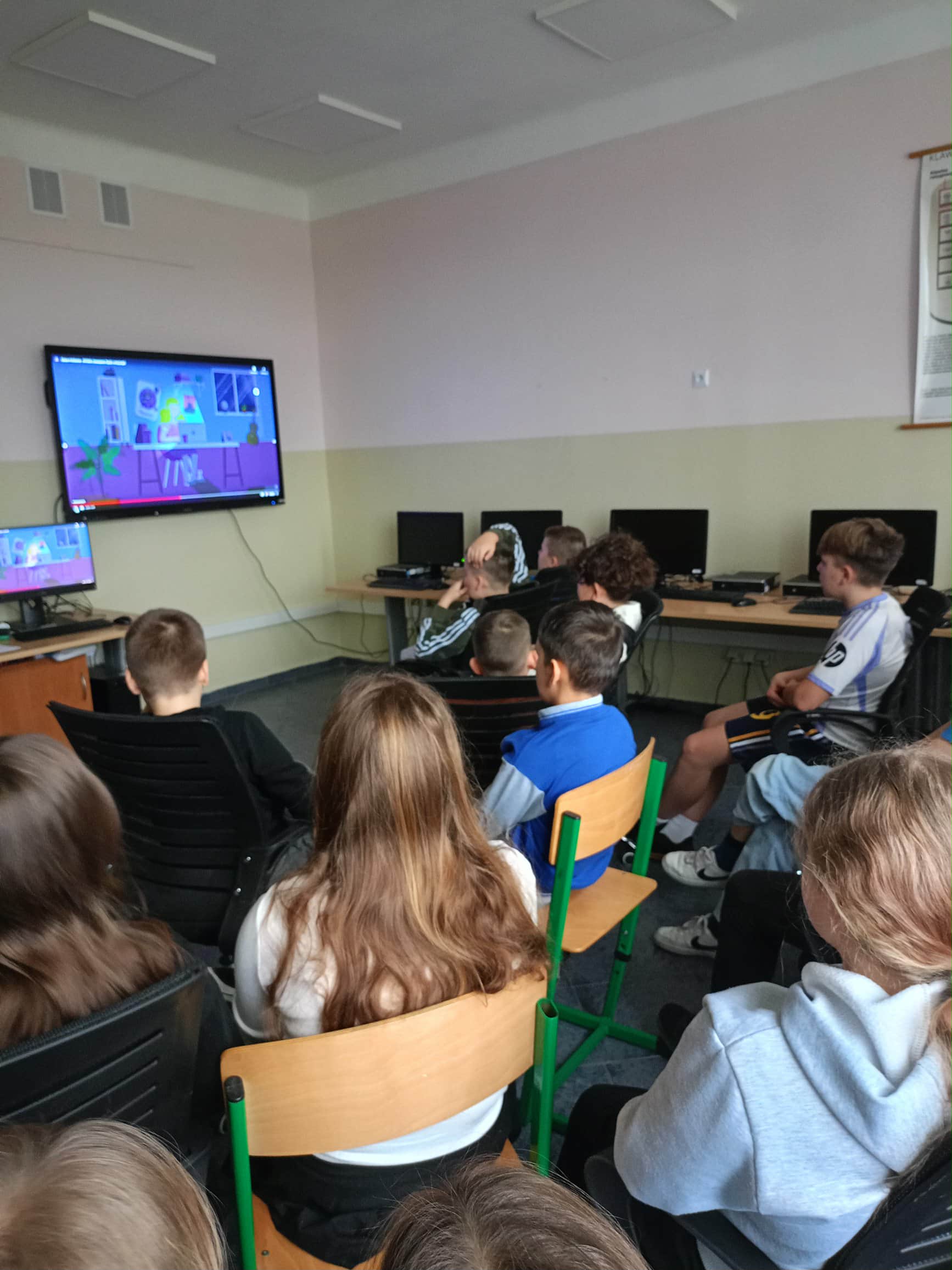 - 1 godzina poświęcona bezpieczeństwu w sieci, podczas której uczniowie poznali zasady odpowiedzialnego korzystania z Internetu, sposoby ochrony prywatności oraz reagowania na zagrożenia cyfrowe.