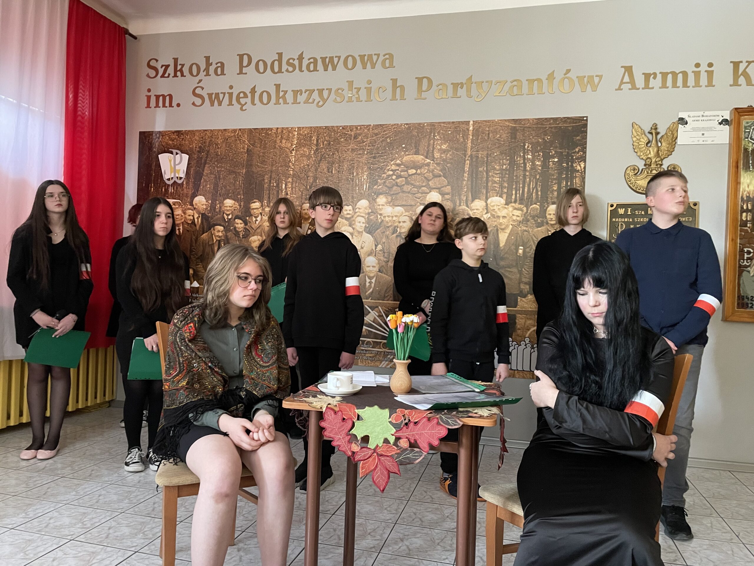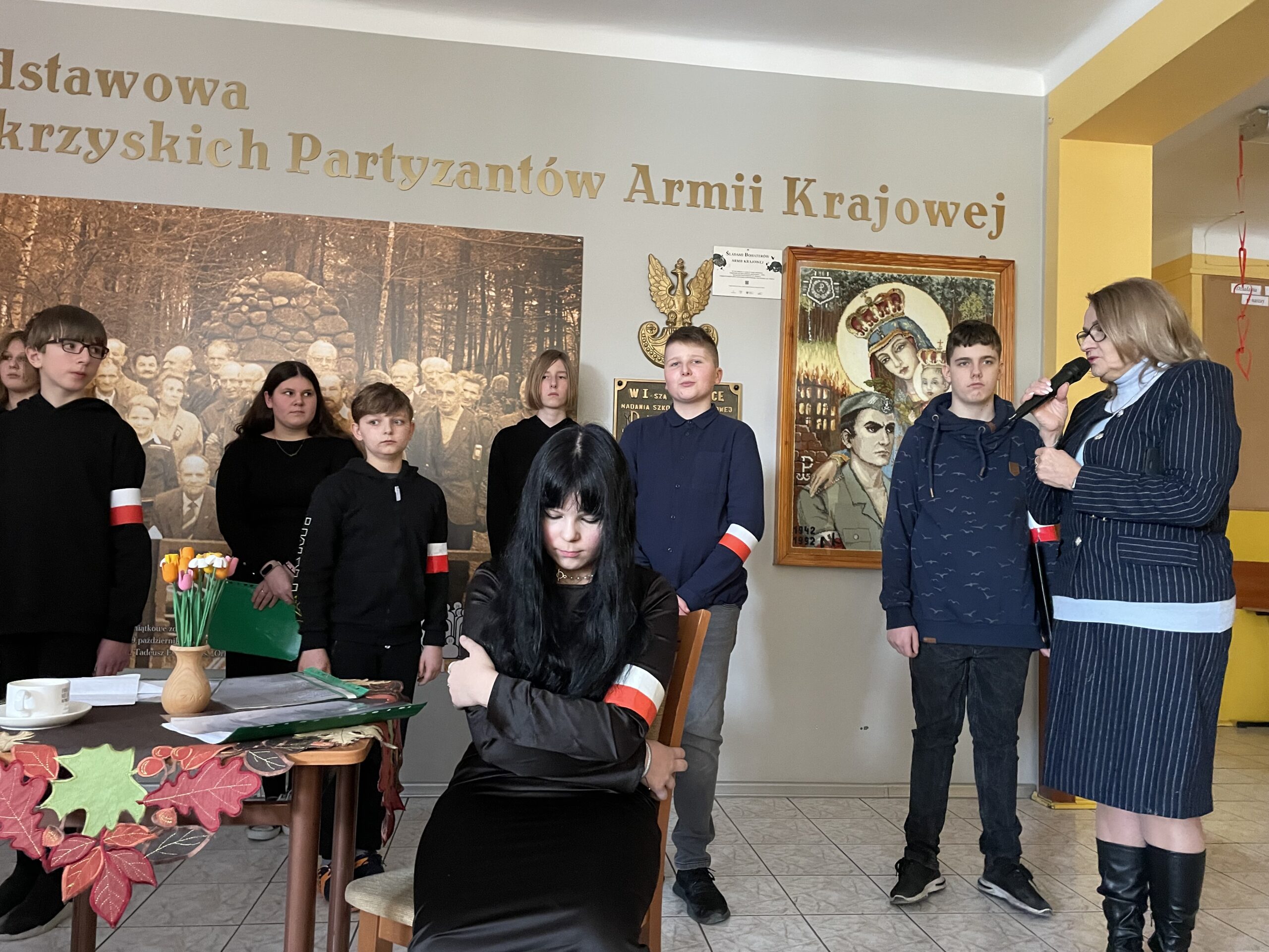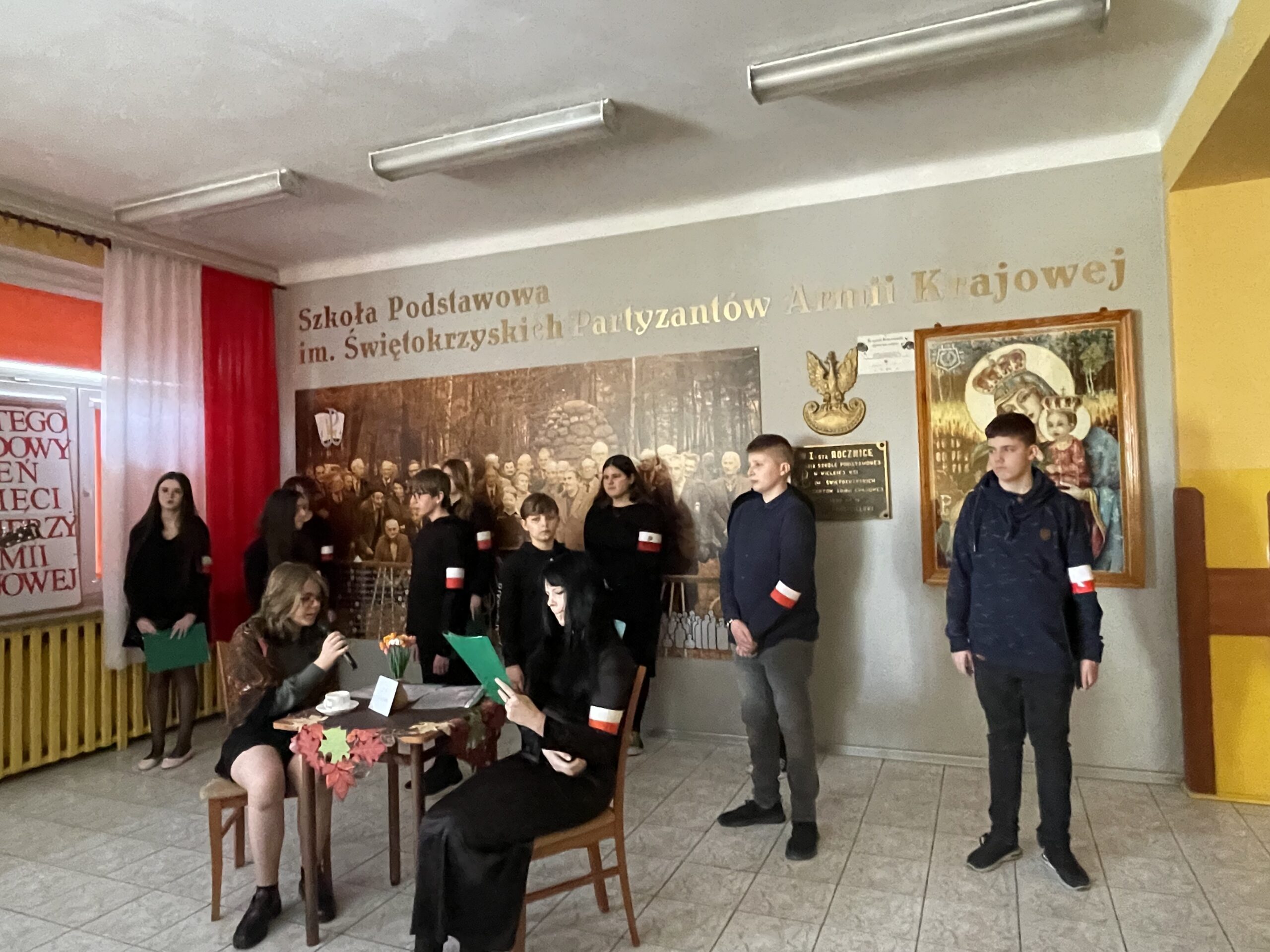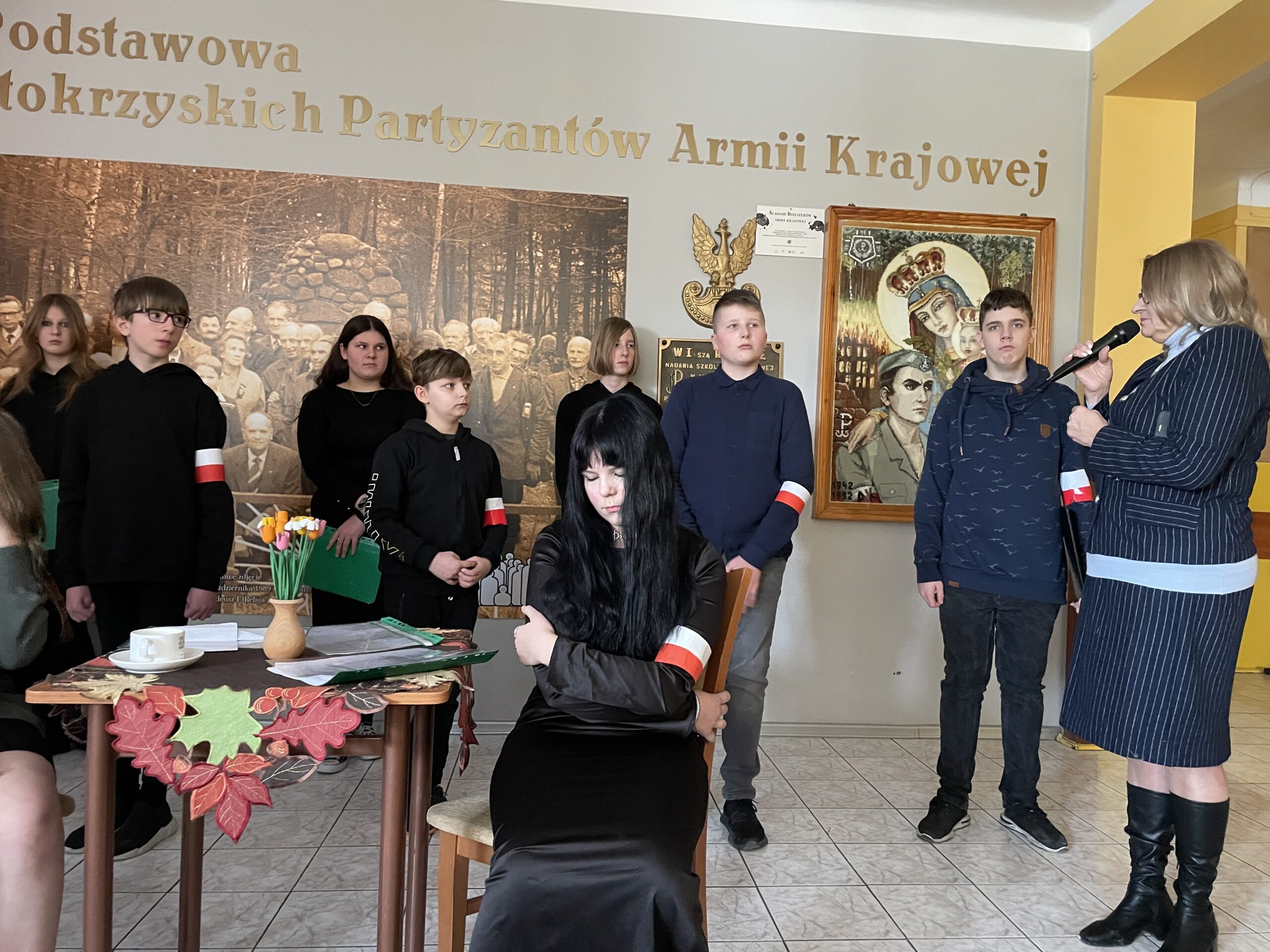 W dniu dzisiejszym odbył się w naszej szkole uroczysty apel poświęcony rocznicy powstania Armii Krajowej, przygotowany przez uczniów kl. VII pod kierunkiem p. Katarzyny Dulęby, p. Mateusza Gembskiego i p. Anny Kryczki. Gościnnie w apelu udział wzięli : Zuzanna Turakiewicz i Aleksander Piętak. Montaż słowno – muzyczny przepleciony był wspomnieniami byłej łączniczki AK, która na koniec kieruje przesłanie do młodych ludzi, z refleksją w tle… Uczniowie doskonale wcielili się w role postaci, stwarzając tym samym odpowiedni klimat do przedstawienia tych trudnych treści… Naszą rolą jest PAMIĘTAĆ i przekazywać tę pamięć innym, co staramy się czynić w takich chwilach jak dziś…