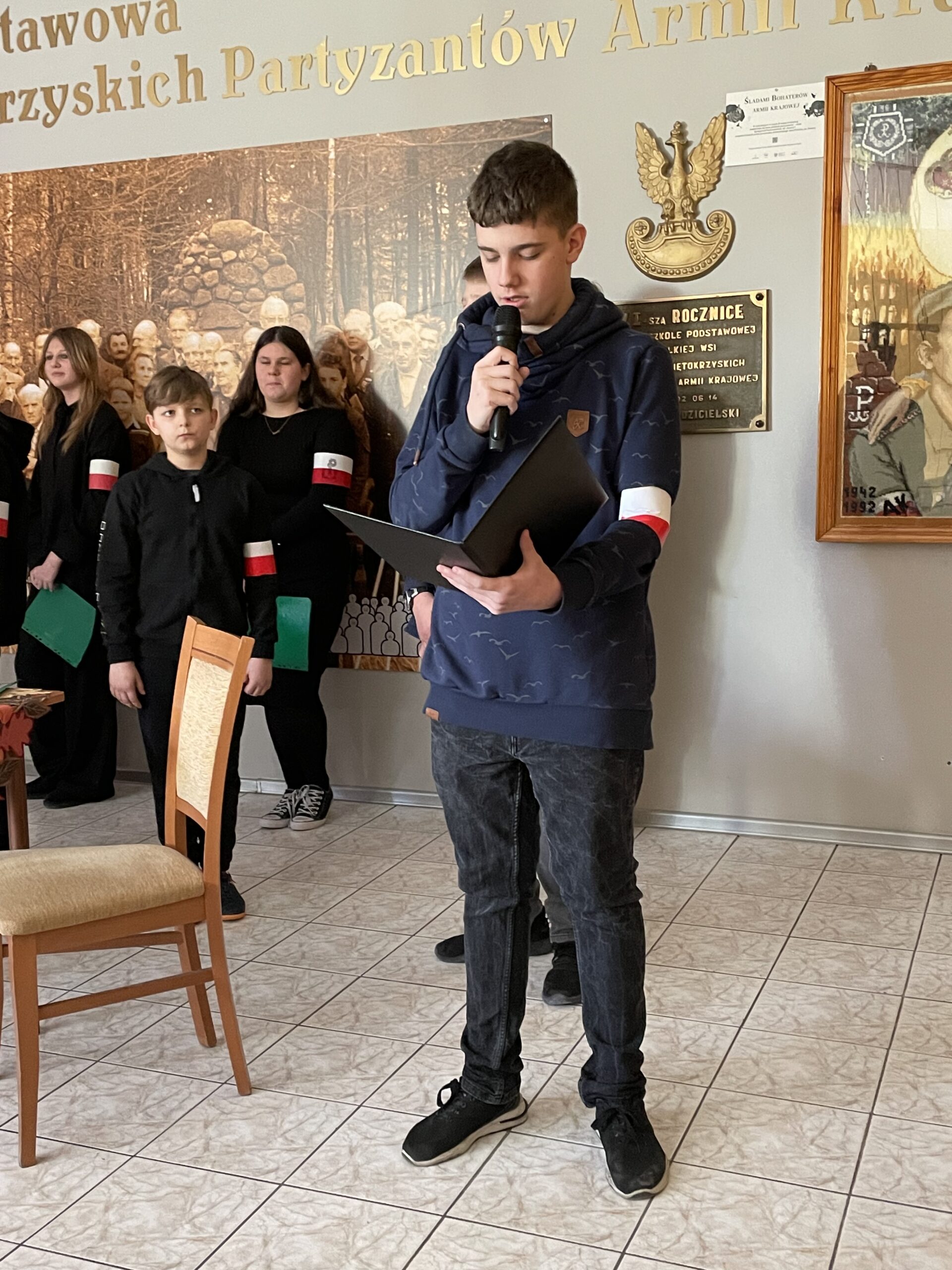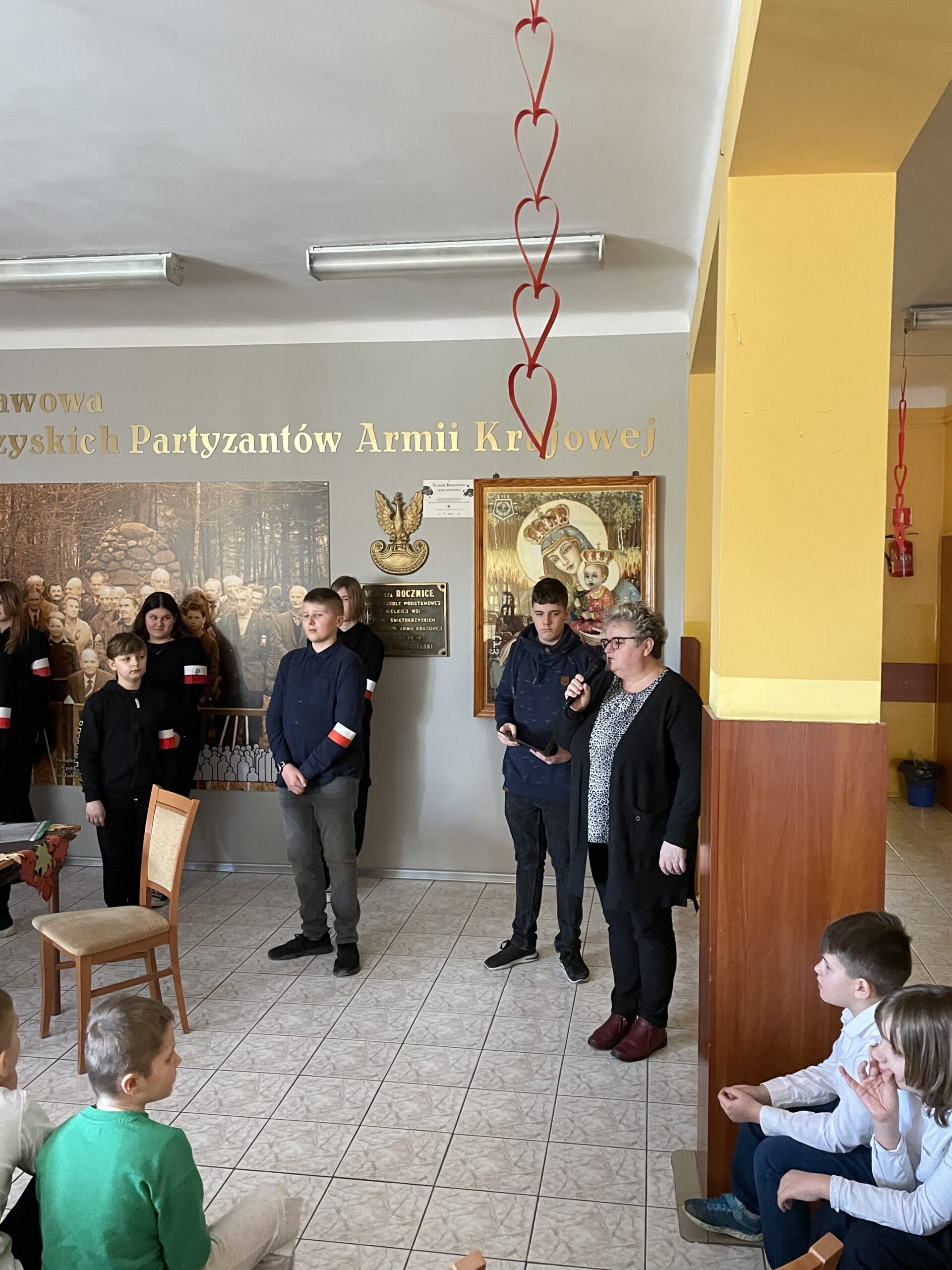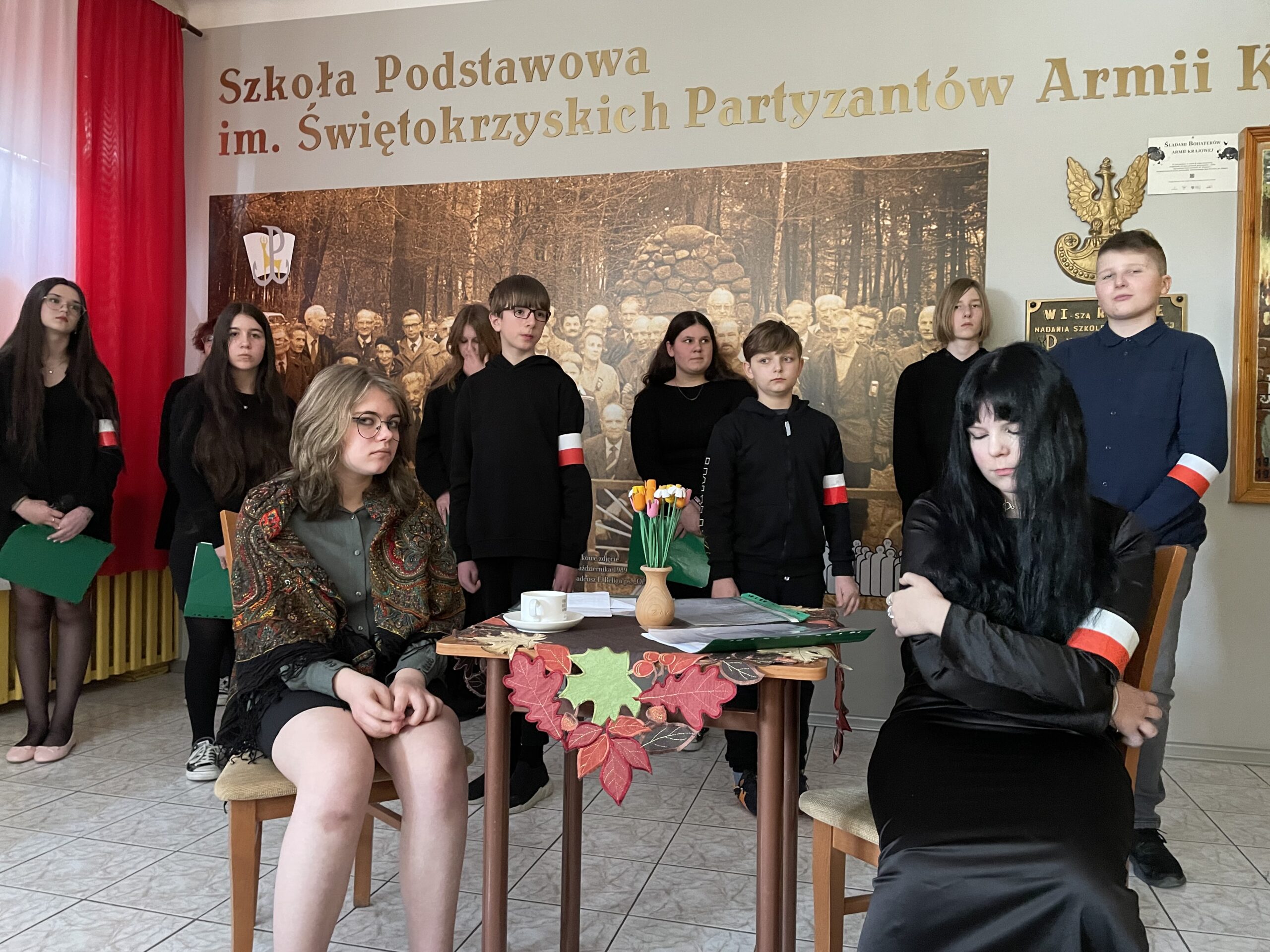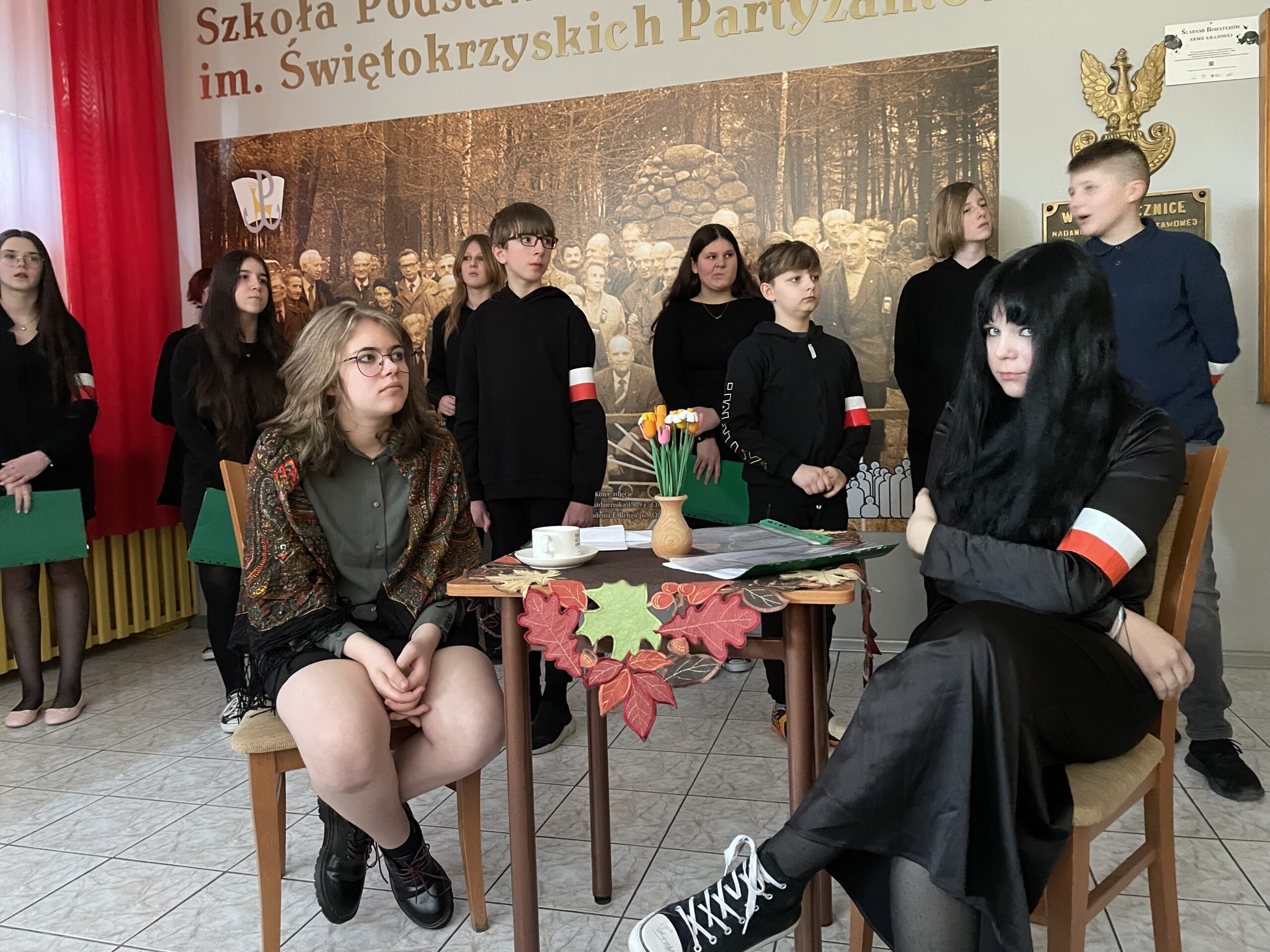 W dniu dzisiejszym odbył się w naszej szkole uroczysty apel poświęcony rocznicy powstania Armii Krajowej, przygotowany przez uczniów kl. VII pod kierunkiem p. Katarzyny Dulęby, p. Mateusza Gembskiego i p. Anny Kryczki. Gościnnie w apelu udział wzięli : Zuzanna Turakiewicz i Aleksander Piętak. Montaż słowno – muzyczny przepleciony był wspomnieniami byłej łączniczki AK, która na koniec kieruje przesłanie do młodych ludzi, z refleksją w tle… Uczniowie doskonale wcielili się w role postaci, stwarzając tym samym odpowiedni klimat do przedstawienia tych trudnych treści… Naszą rolą jest PAMIĘTAĆ i przekazywać tę pamięć innym, co staramy się czynić w takich chwilach jak dziś…