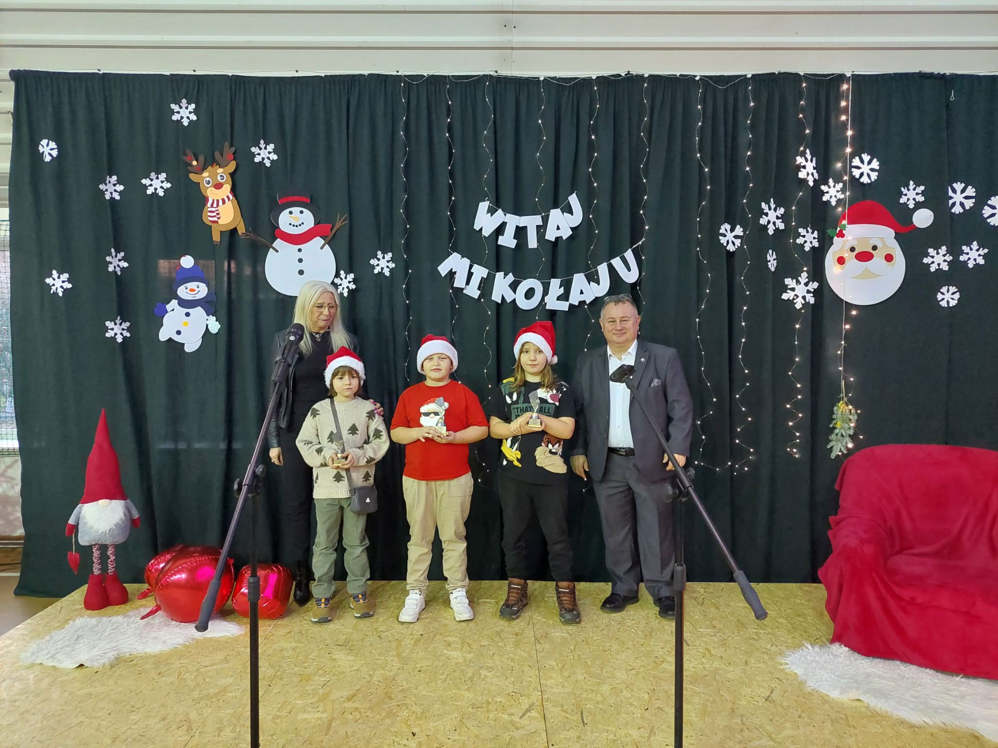 Podczas piątkowego Kiermaszu Świątecznego Burmistrz Miasta i Gminy Wąchock p. Robert Janus oraz dyrektor szkoły p. Małgorzata Zdziesińska wręczyli puchary zwycięzcom